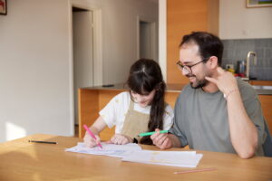 En trefløjet folder, hvor I selv kan tilpasse tekster og billeder. Til print på alm. papir – ikke til trykkeri.